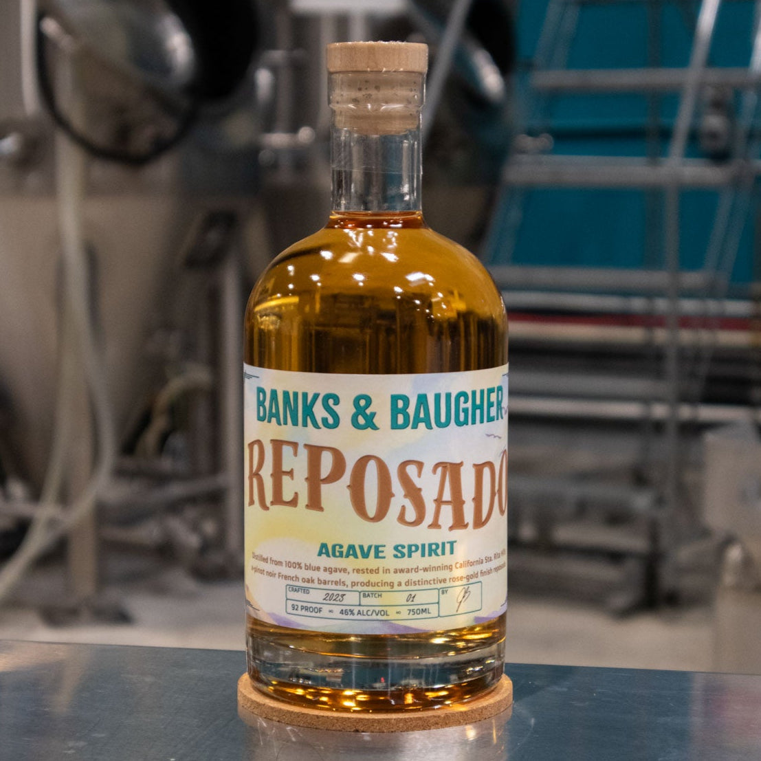 Distilled from 100% blue agave, rested in award-winning California Sta. Rita Hills x-pinot noir French oak barrels, producing a distinctive rose-gold finish reposado.
